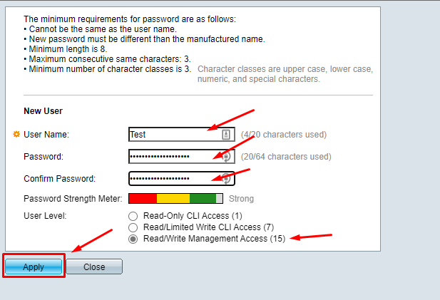 - Step 7 เมื่อกดเลือก Add จะมีหน้าต่างสำหรับสร้าง User จากนั้นกรอกข้อมูลให้ครบถ้วน และกด Apply