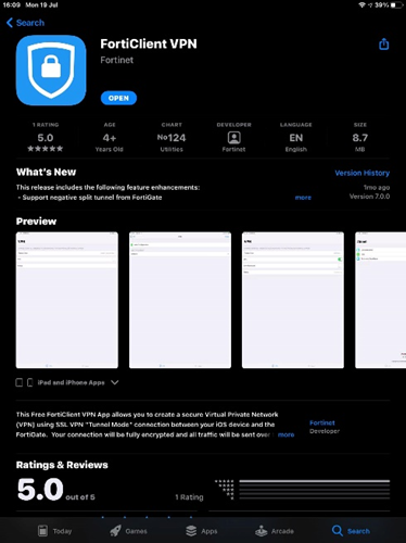 1. สามารถ Download โปรแกรมได้โดยตรงจาก App store โดยค้นหาคำว่า “FortiCleint VPN”