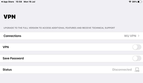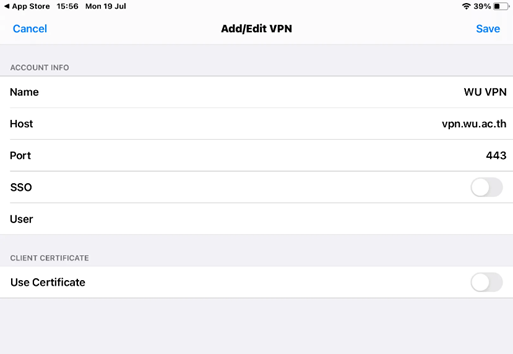 - Server: vpn.wu.ac.th